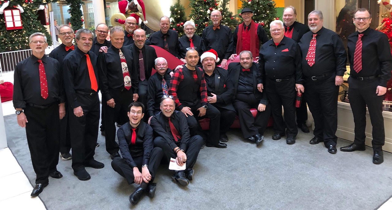 On November 15, 2025 a contingent of Harbourtown Sound singers met at the Burlington Mall to spread some festive cheer among the many harried shoppers. Many paused their search for that special gift to listen and enjoy the harmony provided by these men before going on their way with a more festive glow in their hearts. Harbourtown Sound also provided seasonal harmony at Oakville Place, and a second time in Burlington Mall when they welcomed the arrival of Santa! What a great time of year to be a singer!